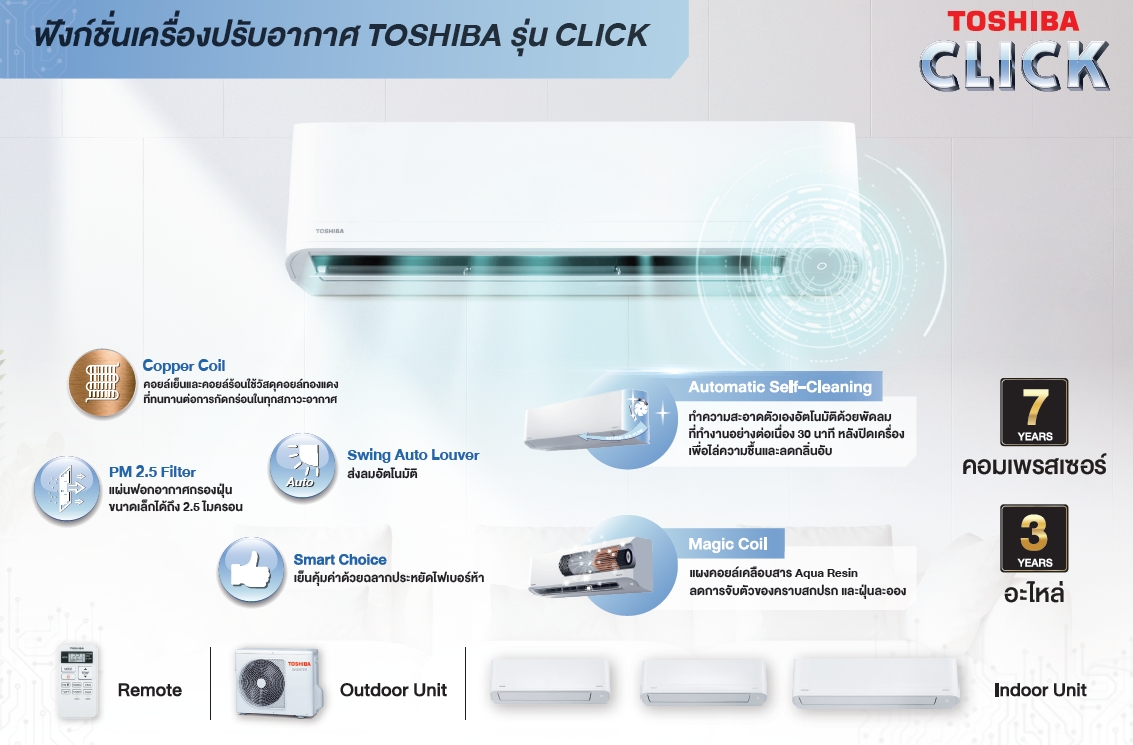 แอร์ผนัง TOSHIBA รุ่น RAS-S4GK-T CLICK ปี 2568