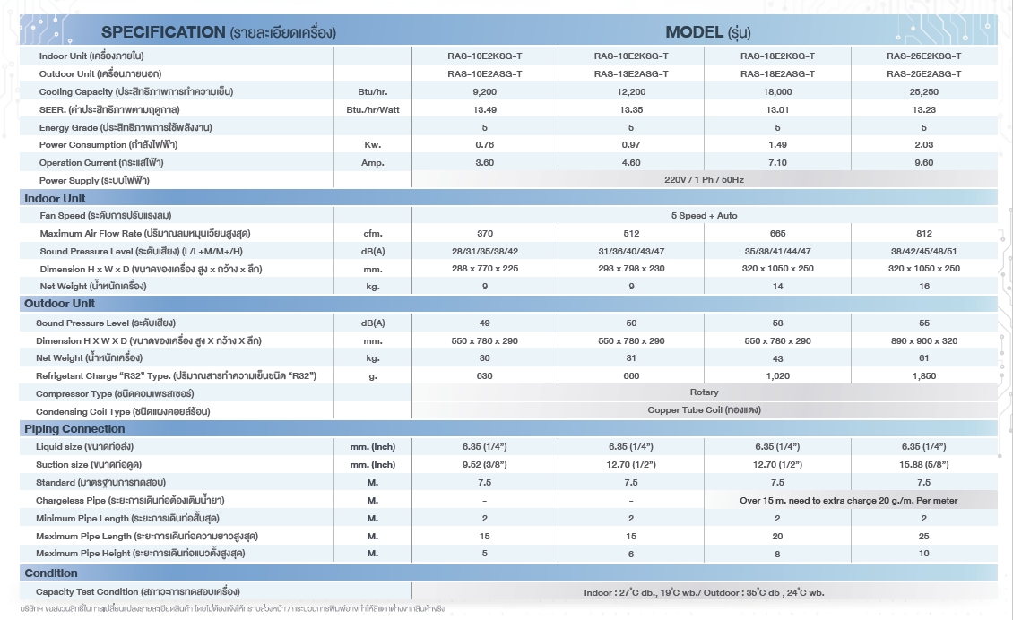 RAS-13S4KG-T ขนาด 12000 BTU ราคาพร้อมติดตั้ง 10500 บาท