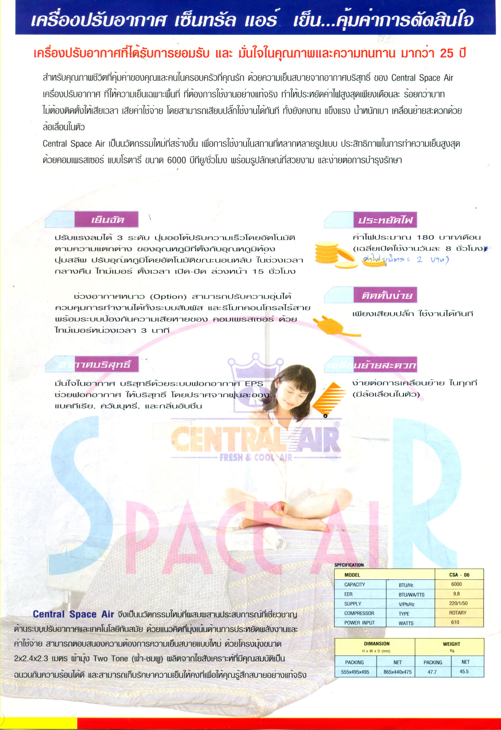 แอร์มุ้ง CENTRAL AIR รุ่น CSA-06 ขนาด 6,000 BTU พร้อมอุปกรณ์ครบชุด