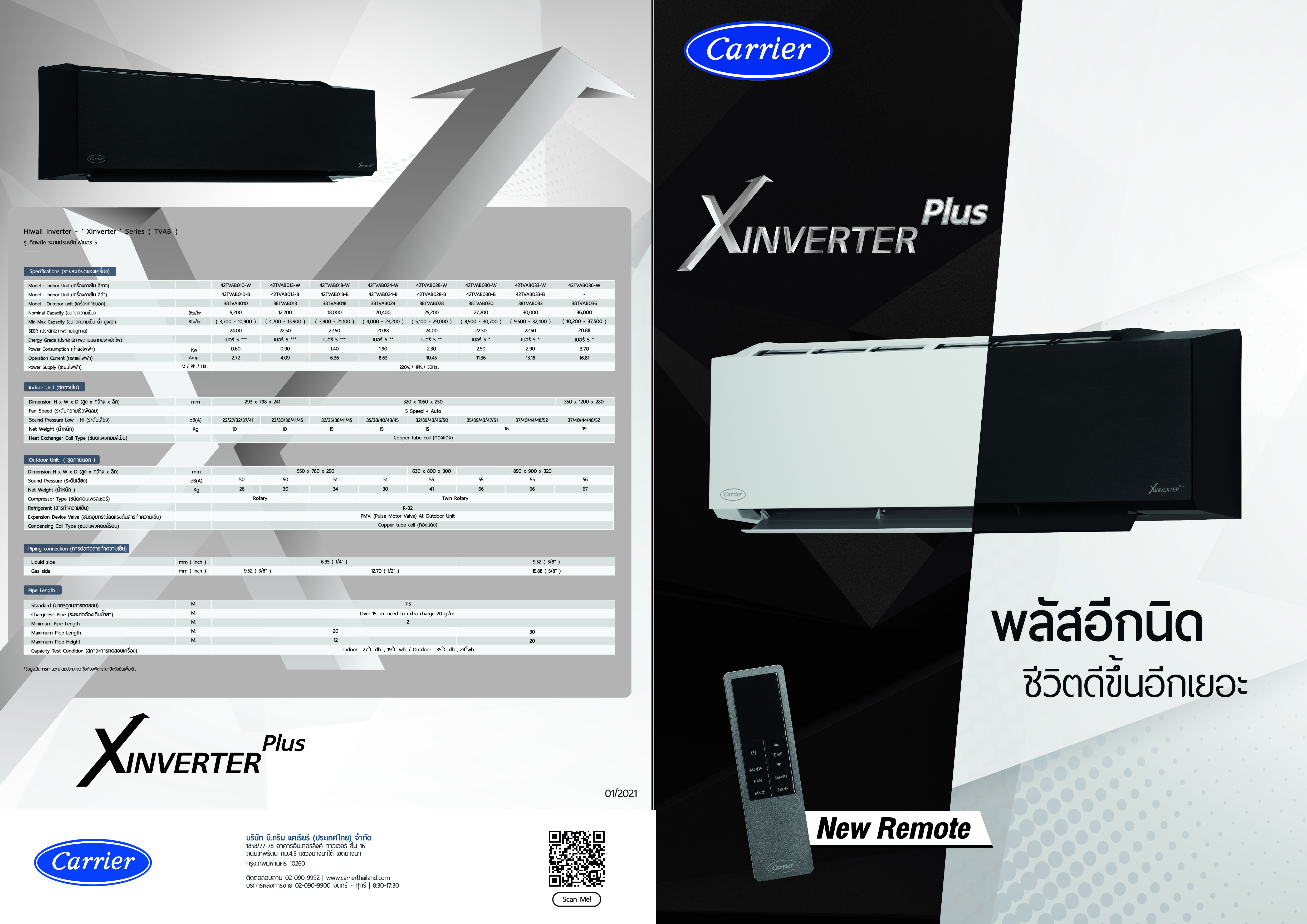 แอร์ผนัง CARRIER รุ่น 42TVAB X INVERTER PLUS ขนาด 9,200-36,000 BTU