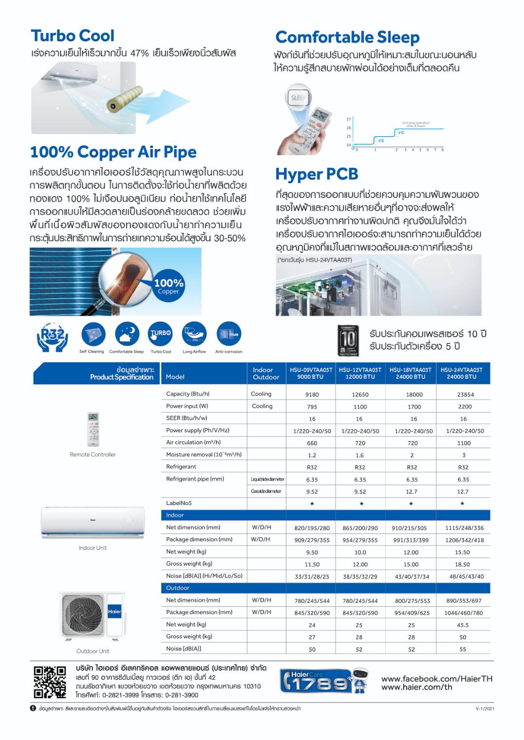 แอร์ผนัง HAIER รุ่น VQAC INVERTER ขนาด 9200-23200 BTU